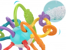 Această jucărie este sigură pentru copil, deoarece nu are muchii ascuțite și are părți moi ce pot fi folosite ca inel de dentiție. Susține dezvoltarea simțurilor tactile, vizuale și auditive datorită zornăitorii care atrage atenția. Buclele flexibile permit deplasarea elementelor colorate, ceea ce este excelent pentru dezvoltarea motricității.