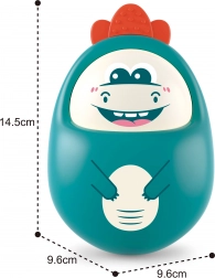 E suficient să îl împingi ușor și dinozaurul începe să se legene – datorită bazei rotunjite revine mereu înapoi și nu se răstoarnă. Ideal pentru antrenarea coordonării și distracție fără frustrare.