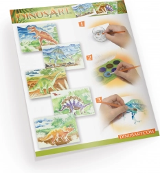 Setul magic de acvarelă DinosArt oferă copiilor ore de distracție creativă. Datorită planșelor speciale magice, motivele cu dinozauri apar treptat în timpul lucrului cu apă și culori, stimulând imaginația și motricitatea fină. Setul complet este potrivit atât pentru începători, cât și pentru micii pictori mai avansați.
