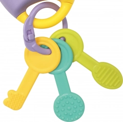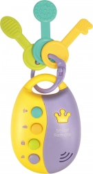 Cheile interactive de la marca Woopie sunt o jucărie multifuncțională și modernă, care cu siguranță va atrage orice micuț. Patru taste colorate, la apăsare, activează diverse efecte sonore și luminoase. Aceste efecte simulează sunetele de deschidere și închidere a mașinii, claxonul, pornirea motorului sau soneria de la ușă, oferind o distracție realistă și captivantă. Diferitele forme ale cheilor pot servi și ca jucărie de ros, care ameliorează disconfortul în timpul erupției dentare și, în același timp, sprijină dezvoltarea senzorială. Copilul se poate bucura și de 10 melodii diferite, care îl vor ajuta să-și dezvolte abilitățile ritmice și muzicale.