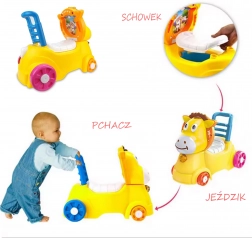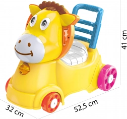 Drăgălașul măgăruș galben îi motivează pe cei mici la mișcare, îmbunătățește echilibrul și coordonarea și stimulează independența. Datorită mânerului practic și spătarului stabil, este potrivit atât pentru primii pași, cât și pentru împins și plimbări sigure prin casă.