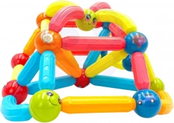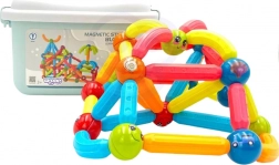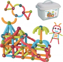 Acest set magnetic WOOPIE, plin de culori, este ideal pentru copii de la 3 ani. Piesele sunt suficient de mari, robuste și rotunjite, astfel încât să fie ușor de ținut în mânuțe. Bilele metalice și bastonașele magnetice, de diferite lungimi și forme, permit crearea de modele imaginative – de la forme simple până la structuri 3D mai complexe.