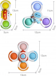 Setul de spinnere pentru copii Woopie aduce o tematică cosmică cu motive de rachetă, extraterestru și OZN. Aceste jucării din plastic sunt o alegere excelentă pentru joaca în toate mediile. Spinnerul are elemente din cauciuc pentru presat, care încurajează dezvoltarea simțurilor. Datorită ventuzelor, jucăriile se fixează ușor pe diverse suprafețe, fiind ideale pentru călătorii sau baie. Elasticitatea rulmenților garantează o mișcare lină și de durată fără efort.