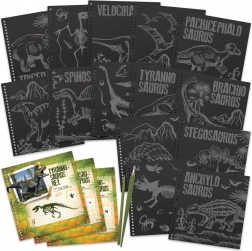 Descoperiți magia motivelor fantastice cu jurnalul de răzuit DinosArt. Fiecare pagină oferă o pânză artistică pregătită pentru creativitate.