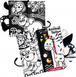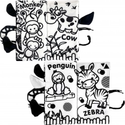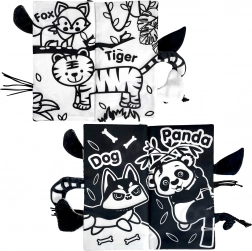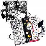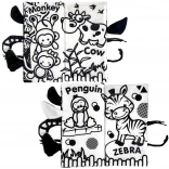 Imaginile alb-negru cu animăluțe sunt ideale pentru nou-născuți și ajută la dezvoltarea acuității vizuale și a concentrării.