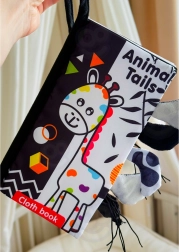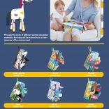 Detaliile practice, precum cozile textile ale animalelor și etichetele de atins, dezvoltă natural motricitatea fină. Datorită buclei/prinderii cu arici, cartea se atașează ușor de cărucior, scaunul auto sau pătuț – ideală acasă și în deplasare.