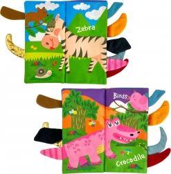 Cărțicica textilă cu tematică de animale din pădure este jucăria ideală pentru cei mai mici. Paginile moi cu efect foșnitor stimulează auzul, culorile vii antrenează vederea, iar cozile ieșite în relief invită la prindere. Astfel, copiii își exersează natural motricitatea fină și coordonarea mână–ochi.
