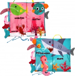 Descoperă cartea textilă jucăușă WOOPIE cu tematică de animale marine, care îmbină stimularea senzorială, dezvoltarea vederii și coordonarea mână–ochi. Paginile moi cu elemente foșnitoare, ilustrațiile colorate și cozile reliefate invită la explorare, iar prinderea practică cu arici permite atașarea ușoară la cărucior sau pătuț.