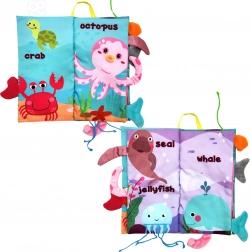 Această carte moale și rezistentă „Ocean Animals” îi captivează pe copii încă de la naștere. Motivele marine colorate, înotătoarele și cozile reliefate, precum și detaliile foșnitoare oferă o bogată stimulare senzorială. Prin apucarea și explorarea cozilor, copilul își consolidează în mod natural motricitatea fină și abilitățile de coordonare.