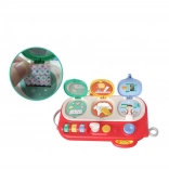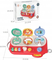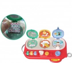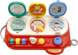 Această jucărie educativă inteligentă are trei ferestruici, fiecare deschizându-se în mod diferit – cu combinație de simboluri, cu cheiță sau cu buton și control rotativ. În interior, copiii găsesc diverse surprize: „batiste” de tras, o imagine cu dințișor și periuță mobilă, precum și un personaj cu selecție rotativă de hăinuțe. Fiecare gest are un rezultat clar, consolidând înțelegerea cauzei și efectului.