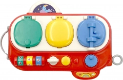 Datorită construcției robuste și culorilor puternice, jucăria este ideală pentru percepția senzorială și dezvoltarea motricității fine, a coordonării mână–ochi și a abilităților cognitive. Copiii pot apăsa, roti, glisa și deschide, antrenând răbdarea, concentrarea și rezolvarea problemelor.