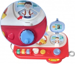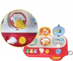 Periuța mobilă lângă imaginea dințișorului formează obiceiuri de igienă, iar discul rotativ cu hăinuțe dezvoltă creativitatea și imaginația în situațiile de zi cu zi.