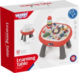Masa interactivă educațională spațială WOOPIE oferă diverse jocuri și activități pentru susținerea dezvoltării copilului. Este echipată cu butoane colorate, comutatoare și alte elemente de manipulare care distrează și dezvoltă copilul. În plus, conține butoane care cântă, o carte, mărgele de șirag, roți dințate și animale. Datorită manoperei solide și atenției la siguranță, masa este ideală pentru jocul zilnic.