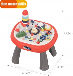 Masa susține dezvoltarea abilităților cognitive prin elemente de joc interactive.