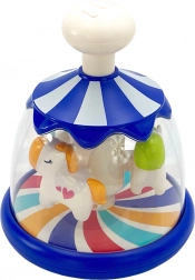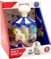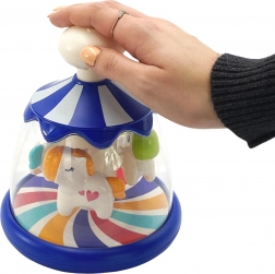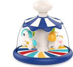 Carusel vesel și colorat cu căluți de la WOOPIE este jucăria perfectă care oferă copiilor momente de bucurie și dezvoltare de neuitat. La apăsarea butonului alb, animăluțele drăguțe încep să se învârtă voioase, creând efectul unei miniaturi a unui carusel real. Jucăria poate fi folosită de la 6 luni, ceea ce o face cadoul ideal pentru cei mai mici. WOOPIE este cunoscută pentru calitatea înaltă și siguranța produselor sale, astfel încât părinții pot fi liniștiți că acest carusel îndeplinește toate standardele de siguranță.