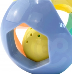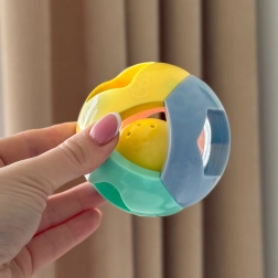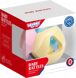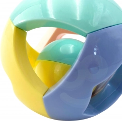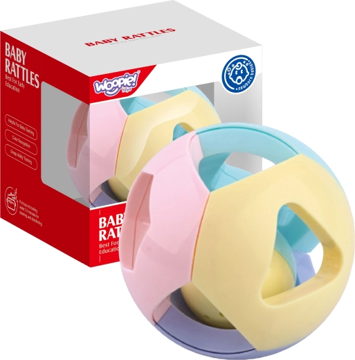 Mingea pastelată WOOPIE îi va încânta pe bebeluși și pe părinți. Datorită construcției ușoare, cu deschideri, copilul o prinde, o scutură și o rostogolește cu ușurință. Elementele interne se mișcă la rotire și creează un zornăit delicat, care stimulează auzul și motivează la explorare. Gripurile din cauciuc moale sunt blânde cu gingiile și pot servi ca inel de dentiție în timpul erupției dinților.