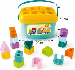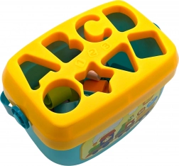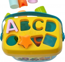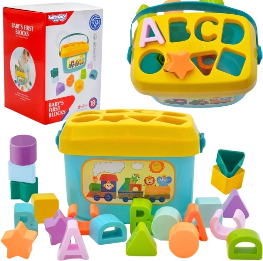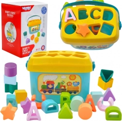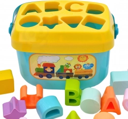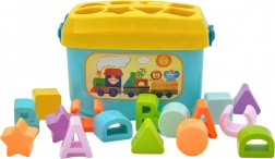 Capacul cu decupaje pentru litere, cifre și forme îi motivează pe copii să potrivească piesele corecte. Dezvoltă recunoașterea simbolurilor, culorilor și gândirea logică.