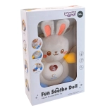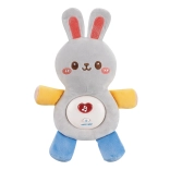 Drăgălașul iepuraș de pluș cu lumină și melodii este un companion ideal pentru un somn liniștit al bebelușilor. Oferă 3 cântece de leagăn liniștitoare, un căpșor luminos delicat, material moale și catifelat și posibilitatea de spălare ușoară după îndepărtarea mecanismului. Datorită buclei se poate prinde de bara de jucării sau de pătuț, oferind copiilor un sentiment de siguranță și confort.