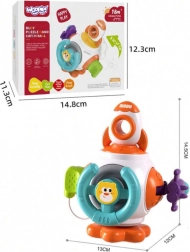 Racheta cosmică Montessori de la marca WOOPIE este un cub senzorial colorat și educativ, destinat copiilor de la 18 luni. Include șase panouri interactive care stimulează simțurile și dezvoltă abilitățile motorii ale copilului, cu elemente precum volan, buton nor sau jucării-rachetă.