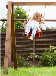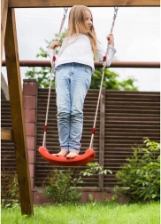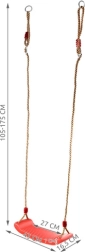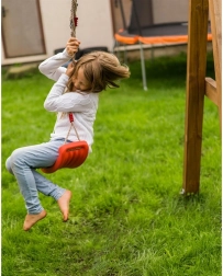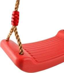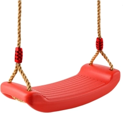 Leagăn roșu din plastic cu șezut ergonomic oferă copiilor distracție și dezvoltarea motricității atât în grădină, cât și în interior. Datorită frânghiilor solide cu lungime reglabilă între 105–175 cm, înălțimea de agățare se adaptează ușor diverselor locuri – de la camera copilului la terasă sau pergolă.