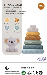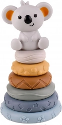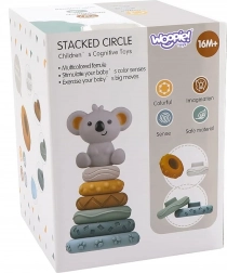Drăgălașa piramidă de stivuit de la WOOPIE este o jucărie educativă și sigură pentru cei mai mici. Fabricată din material moale, elastic și netoxic, poate fi folosită și ca inel de dentiție. Șase inele de dimensiuni diferite și figurina de koala de deasupra susțin percepția senzorială, coordonarea mână-ochi și motricitatea fină.