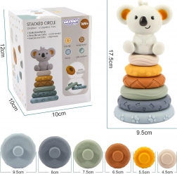 Copiii pot stivui după imaginație sau după mărimea inelelor, dezvoltând recunoașterea formelor și dimensiunilor, concentrarea și răbdarea. Culorile pastelate delicate și figurina moale de koala transformă jucăria într-un companion atrăgător pentru fiecare zi.