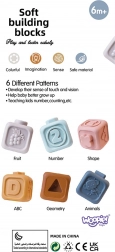 Cuburile din silicon sunt catifelate la atingere și funcționează ca jucărie de dentiție delicată, care calmează gingiile și este sigură pentru utilizare zilnică.