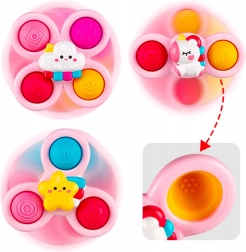 Cu acest set de trei spinnere de la marca WOOPIE, copilul tău va fi impresionat. Setul conține spinnere în formă de unicorn, stea și nor. Spinnerele pot fi atașate pe diferite suprafețe, cum ar fi geamuri sau cada în timpul băii, jucăria fiind rezistentă la apă. Rulmenții asigură o rotire de lungă durată și piesele detașabile permit o creativitate nesfârșită în combinarea lor. Are părți din cauciuc cu diverse suprafețe, care dezvoltă simțurile și ajută la reducerea stresului.