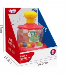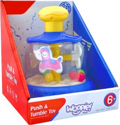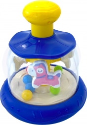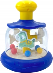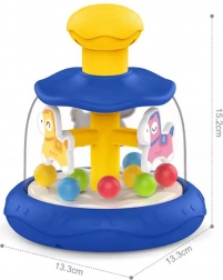 Descoperiți lumea prin joacă cu jucăria inovatoare "Caruselul Distractiv"! Este concepută pentru cei mai mici exploratori și ajută la dezvoltarea abilităților lor motorii, senzoriale și cognitive. Este suficient să apăsați partea galbenă de sus a caruselului pentru ca calul și biluțele să înceapă să se miște.