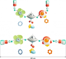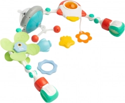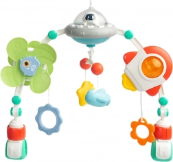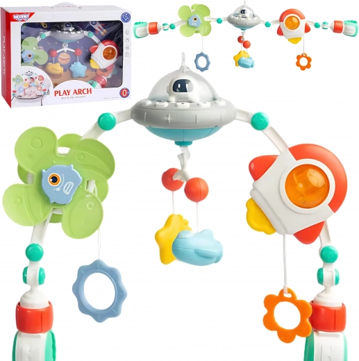 Arcul interactiv universal WOOPIE BABY transformă orice cărucior, scaun auto sau pătuț într-un loc de joacă distractiv. Este flexibil, se atașează ușor aproape oriunde și oferă efecte luminoase și redare de cântece de leagăn cu reglarea volumului. Jucăriile colorate suspendate invită la prindere, susțin dezvoltarea senzorială, iar unele pot fi folosite ca inele pentru dentiție.