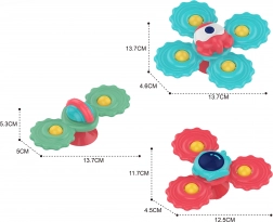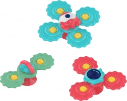 Setul interactiv și colorat de 3 jucării spinner rotative de la WOOPIE este ideal pentru distracția copilului tău. Fiecare jucărie din set este diferită și are 2, 3 sau 4 brațe. Pot fi ușor fixate pe suprafețe netede, oferind opțiuni suplimentare de joacă.