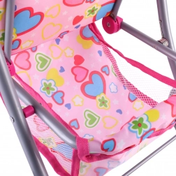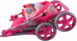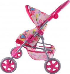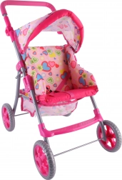 Un cărucior pentru păpuși ușor și stabil de la marca Woopie va încânta orice mică mămică. Are mâner reglabil, copertină pliabilă, centuri de siguranță și un coș practic pentru mărunțișuri. Datorită roților silențioase din spumă, este ideal atât pentru casă, cât și pentru plimbări, iar după joacă îl pliați ușor pentru a economisi spațiu. Designul stilat cu inimioare va fi iubit de copii.