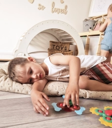 Setul de trei spinnere colorate WOOPIE este o jucărie senzorială ideală pentru copii de la 18 luni. Datorită ventuzelor solide, le atașați cu ușurință pe suprafețe netede – sticlă, cadă sau masă – creând copiilor o activitate distractivă și sigură oriunde. Spinnerele au elemente proeminente din cauciuc și inele pentru rotire, care stimulează atingerea, vederea și concentrarea.
