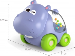Woopie Auto Zornăitoare în formă de hipopotam drăguț! Această jucărie unică stimulează activitatea copilului și, în același timp, îi dezvoltă simțurile. La mișcarea zornăitoarei, micile bile colorate din burtica hipopotamului încep să foșnească și să se rotească, oferind stimuli atât auditivi, cât și vizuali.
