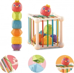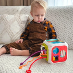 Cubul senzorial și sortatorul WOOPIE BABY este o jucărie educativă inteligentă încă de la naștere. Elasticile colorate se întind plăcut, astfel încât copiii pot introduce și scoate piesele în siguranță, dezvoltând motricitatea, gândirea logică și simțurile. Potrivit atât pentru joacă independentă, cât și pentru explorare împreună cu părinții.