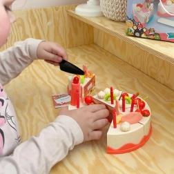 Tortul aniversar Woopie este un joc perfect atât pentru micile gazde, cât și pentru gazde. Setul conține 40 de piese diferite, inclusiv o lumânare care se aprinde la apăsarea unui buton. Copiii își pot dezvolta creativitatea și imaginația în timpul jocului datorită posibilității de a decora tortul independent cu lumânări, decorațiuni cu iepurași și fructe.
