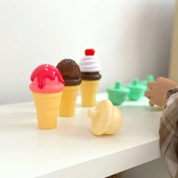 Setul de înghețată dezvoltă fantezia și creativitatea copiilor, permițând copilului să preia rolul de cofetar și client. Conține toate piesele necesare pentru a crea o experiență de înghețată perfectă. Copilul ia un cornet, scoate o cupă de înghețată și le aranjează după propria creativitate.