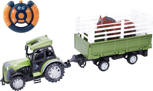 Explorați aventurile la fermă cu acest tractor cu remorcă controlat de la distanță! Perfect pentru micii agricultori, acest set de jucării aduce lume agricolă chiar în camera copilului tău.