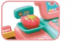 Cu ajutorul cititorului și al cântarului integrat, copiii „scanează” ușor produsele și cântăresc fructele sau legumele pentru o experiență realistă.