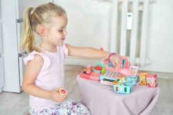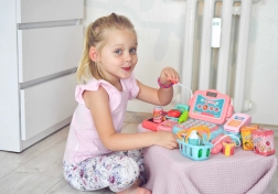 Jocul de-a magazinul susține comunicarea, colaborarea și baza educației financiare. Copiii pot scana produsele, „cântări” fructele și legumele, introduce prețuri și alege plata cash sau cu cardul. Construcția din plastic de calitate și sigură asigură distracție îndelungată în condiții de siguranță.