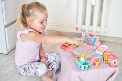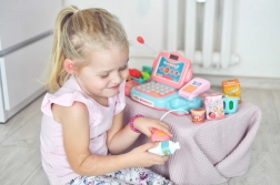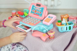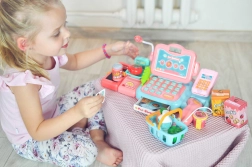 - Set complet: casă de marcat + 24 de accesorii pentru joacă imediată