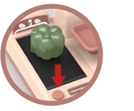 - Casă de marcat, scanner, cântar, microfon, terminal de plată, coș, fructe și legume, biscuiți, sticlă cu apă, cola, înghețată, card de plată, bancnote, monede, telefon (în total cca 25 de accesorii)