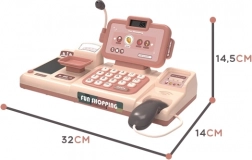 - Scanner cu sunet, calculator, replici în limba engleză, melodii și cântec, microfon funcțional, sertar de bani care se deschide, bandă rulantă, reglarea volumului