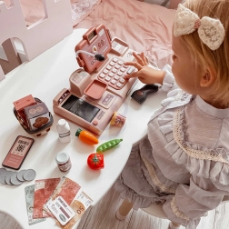 Casa de marcat WOOPIE pentru copii, cu un set bogat de 25 de accesorii, transformă fiecare zi într-un magazin plin de fantezie. Oferă scanner, cântar, microfon, terminal de plată și calculator funcționale. Copiii pot plăti cash, cu cardul sau „cu telefonul”, pot face primele bonuri și se pot bucura de sunete realiste și melodii – ideal pentru dezvoltarea imaginației și a abilităților sociale de la 3 ani.