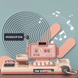 Casa de marcat vorbește în engleză, redă cântece și melodii clasice. Microfonul funcțional dă ritm jocului micului vânzător.