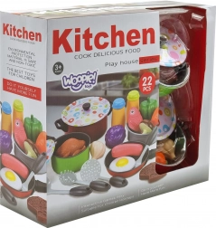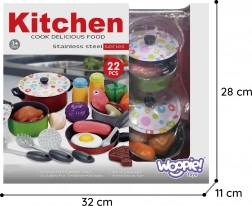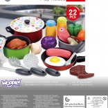 Cu setul WOOPIE, copilul tău primește propria bucătărie în miniatură: oale cu capace, tigăiță, bol, condimente și o selecție bogată de alimente, de la ouă și cârnați la pește, legume sau friptură. Datorită execuției realiste și culorilor vii, dezvoltă imaginația, motricitatea fină și abilitățile sociale prin jocul de-a gătitul.