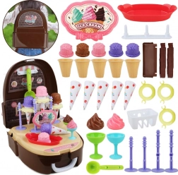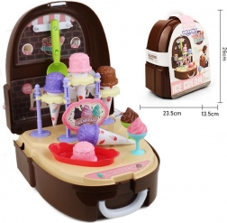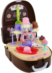 Micul cofetar mereu pregătit! Acest set adorabil sub formă de rucsăcel se transformă la deschidere într-o gelaterie completă și un mini-magazin. Copiii pot servi înghețată la cupă, pot umple cornete și pot vinde delicii dulci prietenilor și părinților. Datorită construcției ușoare, îl iau cu ei cu ușurință la locul de joacă, la bunici sau în vacanță.