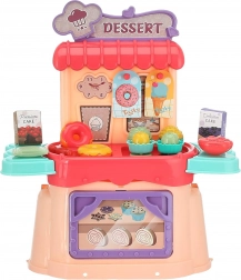 Include înghețate, gogoși, bomboane, boluri, cutiuțe și alte accesorii pentru un joc realist de magazin și cofetărie.