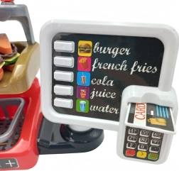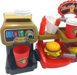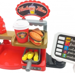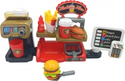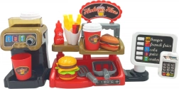 Acest set interactiv le permite copiilor să experimenteze un sentiment autentic de muncă la un fast food, unde pot nu doar să servească mâncăruri, ci și să utilizeze o casă de marcat cu efecte sonore. Copiii vor aprecia și posibilitatea de a turna apă adevărată din distribuitor, adăugând un plus de realism.