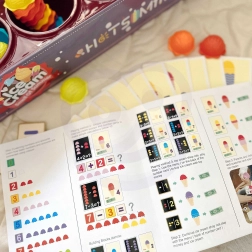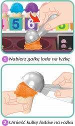 Include bile de înghețată, cornete, carduri de comandă și bani, sprijinind aritmetica și joaca creativă.